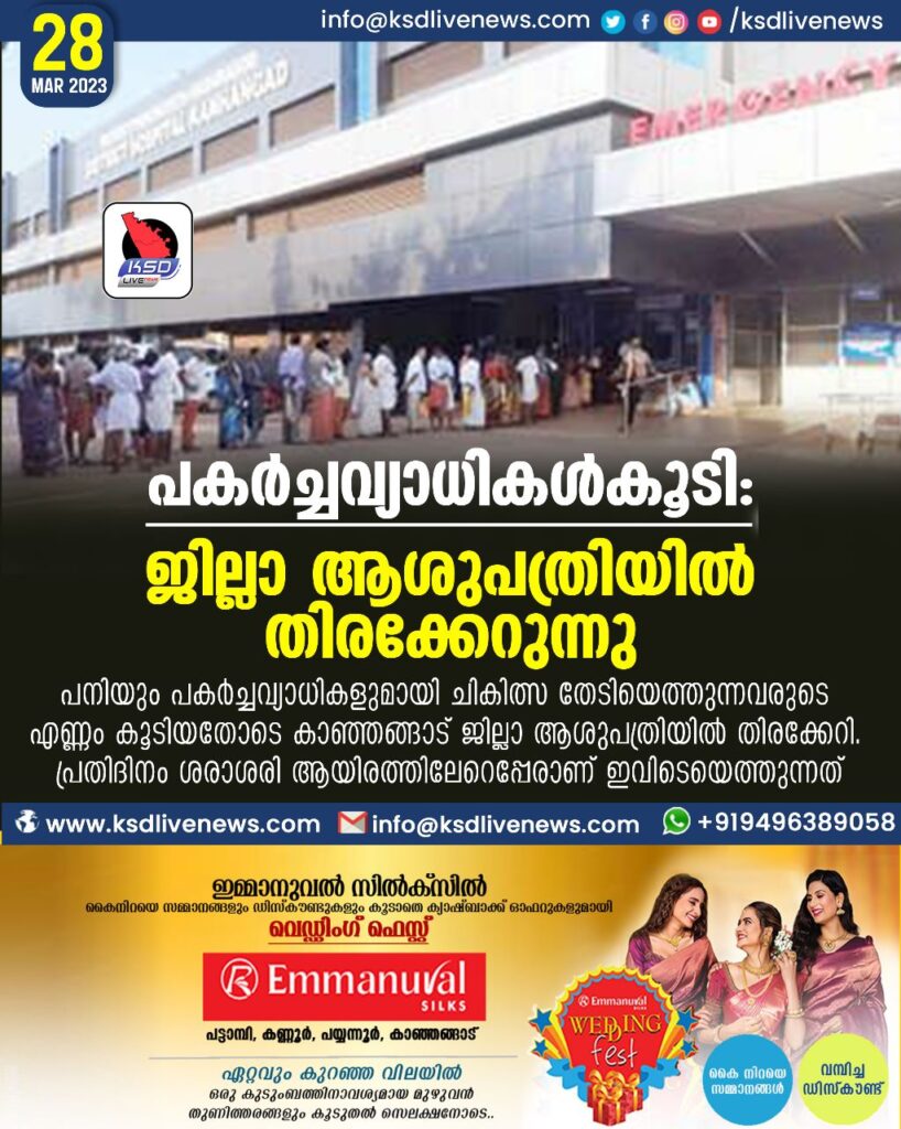 പകർച്ചവ്യാധികൾകൂടി: ജില്ലാ ആസ്പത്രിയിൽ തിരക്കേറുന്നു