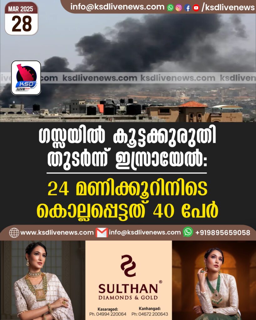 തെല്‍ അവിവ്: ഗസ്സയില്‍ കൂട്ടക്കുരുതി തുടർന്ന് ഇസ്രായേല്‍. കഴിഞ്ഞ 24 മണിക്കൂറിനിടെ 40 പേരാണ് കൊല്ലപ്പെട്ടത്.