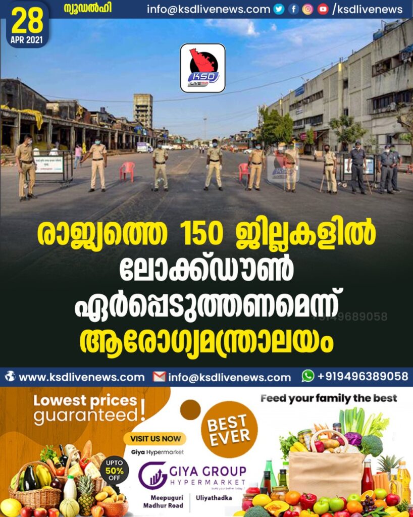 രാജ്യത്തെ 150 ജില്ലകളില് ലോക്ക്ഡൗണ് ഏര്പ്പെടുത്തണമെന്ന് ആരോഗ്യമന്ത്രാലയം