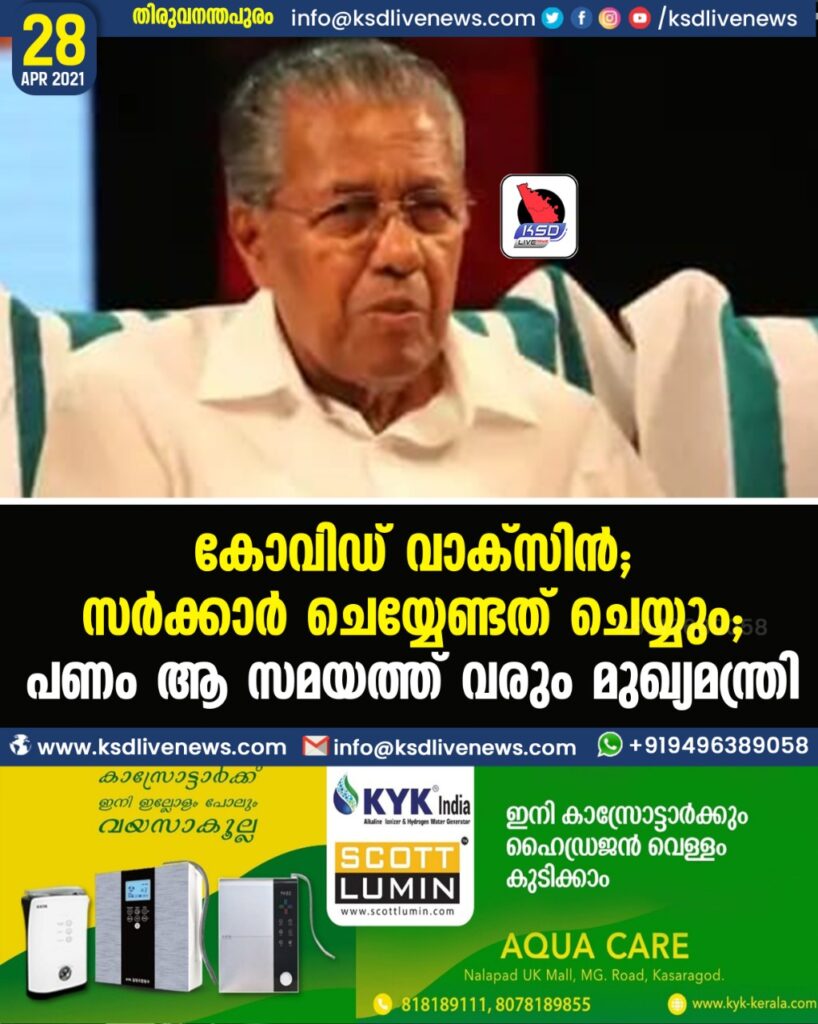 കോവിഡ് വാക്സിന്: സര്ക്കാര് ചെയ്യേണ്ടത് ചെയ്യും; പണം ആ സമയത്ത് വരും – മുഖ്യമന്ത്രി