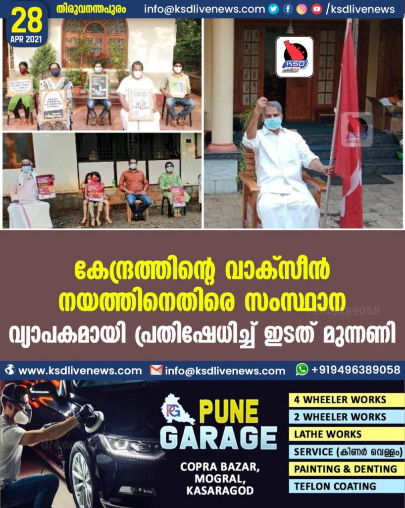കേന്ദ്രത്തിന്റെ വാക്സീന് നയത്തിനെതിരെ സംസ്ഥാന വ്യാപകമായി പ്രതിഷേധിച്ച് ഇടത് മുന്നണി