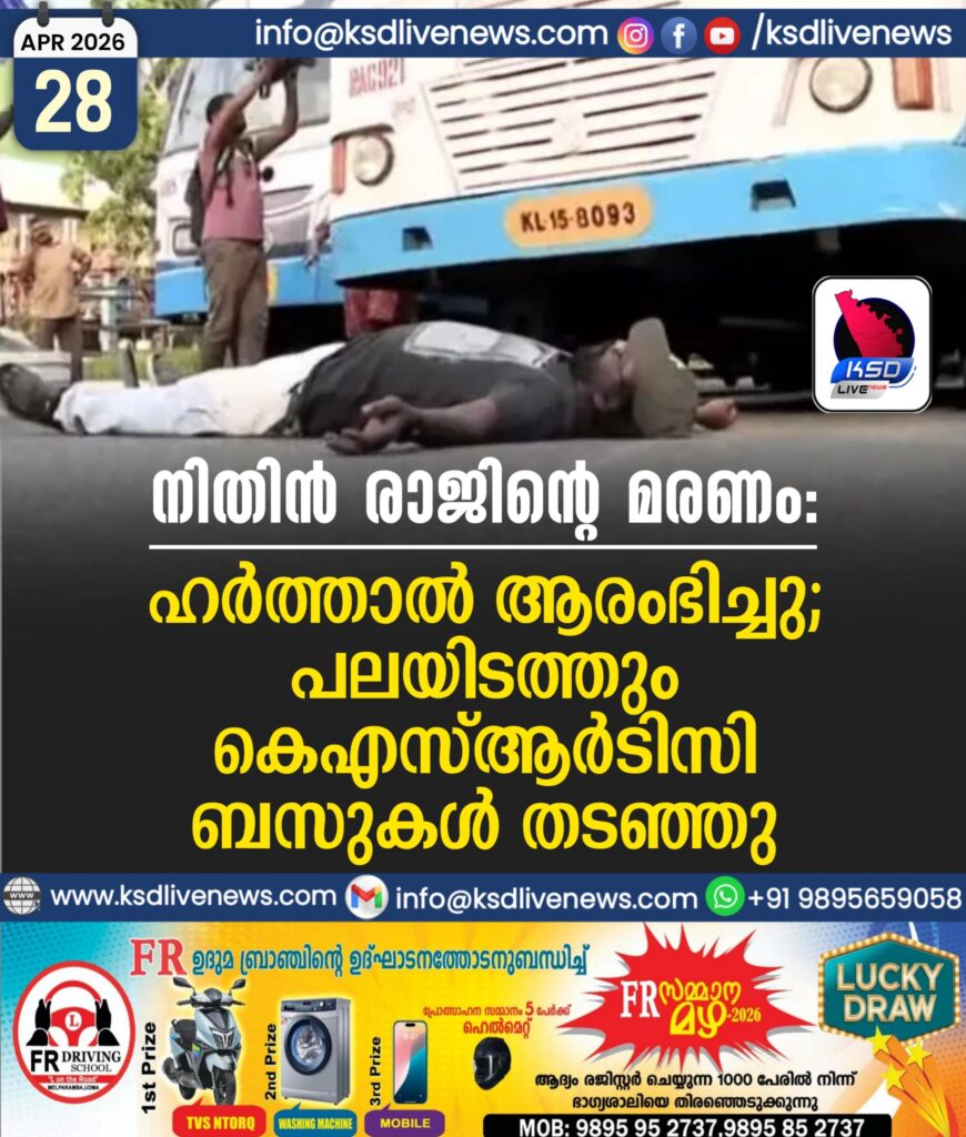 നിതിൻ രാജിന്റെ മരണം: ഹർത്താൽ ആരംഭിച്ചു, പലയിടത്തും കെഎസ്ആർടിസി ബസുകൾ തടഞ്ഞു