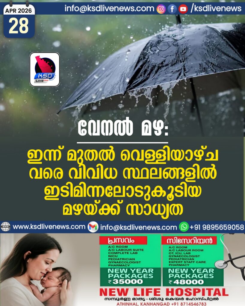 വേനല്മഴ; ഇന്ന് മുതല് വെള്ളിയാഴ്ച വരെ വിവിധ സ്ഥലങ്ങളില് ഇടിമിന്നലോടുകൂടിയ മഴയ്ക്ക് സാധ്യത
