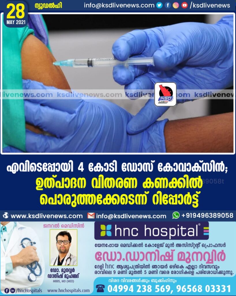 എവിടെപ്പോയി 4 കോടി ഡോസ് കോവാക്സിന്; ഉത്പാദന-വിതരണ കണക്കില് പൊരുത്തക്കേടെന്ന് റിപ്പോര്ട്ട്