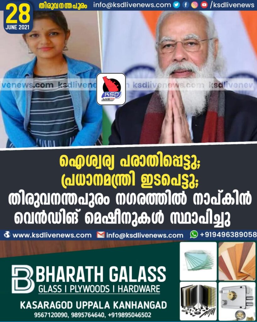 ഐശ്വര്യ പരാതിപ്പെട്ടു; പ്രധാനമന്ത്രി ഇടപെട്ടു; തിരുവനന്തപുരം നഗരത്തില് നാപ്കിന് വെന്ഡിങ് മെഷീനുകള് സ്ഥാപിച്ചു
