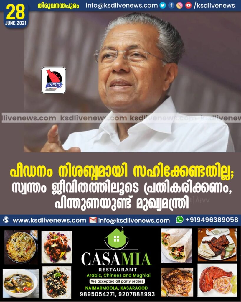 പീഡനം നിശബ്ദമായി സഹിക്കേണ്ടതില്ല; സ്വന്തം ജീവിതത്തിലൂടെ പ്രതികരിക്കണം, പിന്തുണയുണ്ട്- മുഖ്യമന്ത്രി