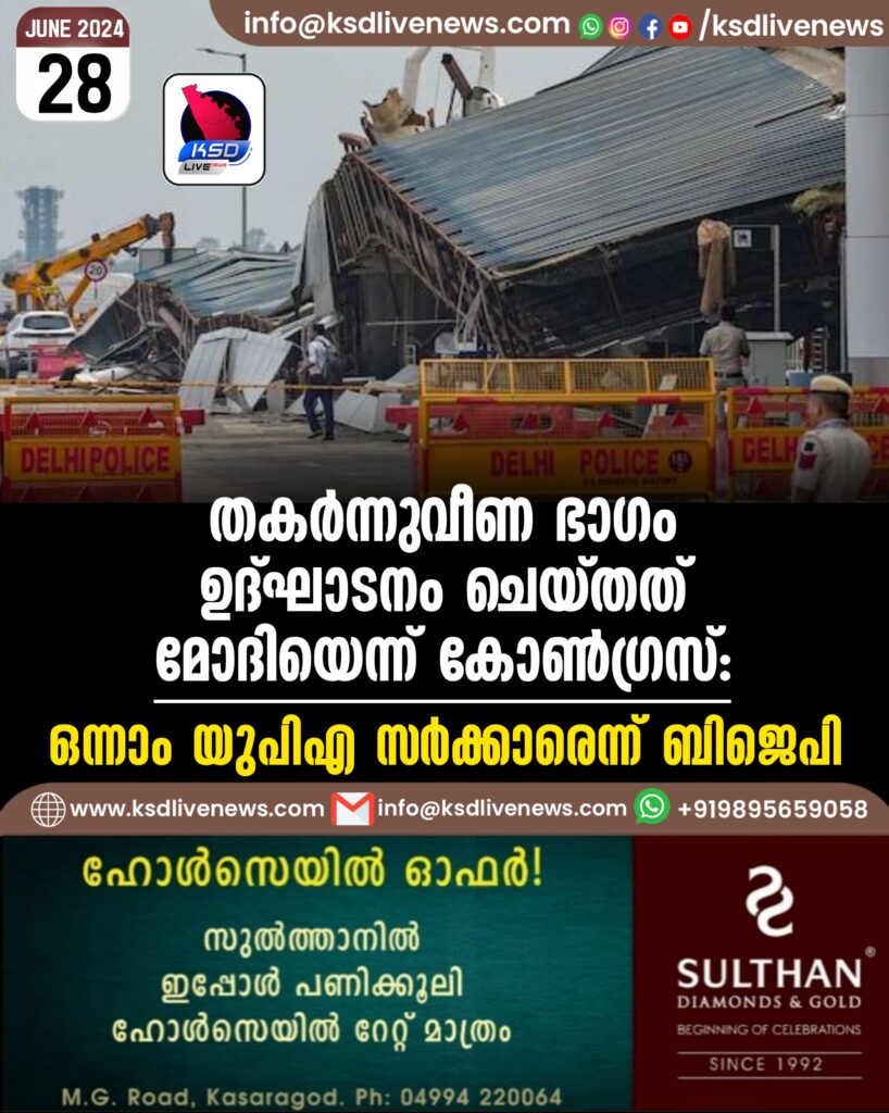 തകർന്നുവീണ ഭാഗം ഉദ്ഘാടനം ചെയ്തത് മോദിയെന്ന് കോൺഗ്രസ്; ഒന്നാം യുപിഎ സർക്കാരെന്ന് ബിജെപി