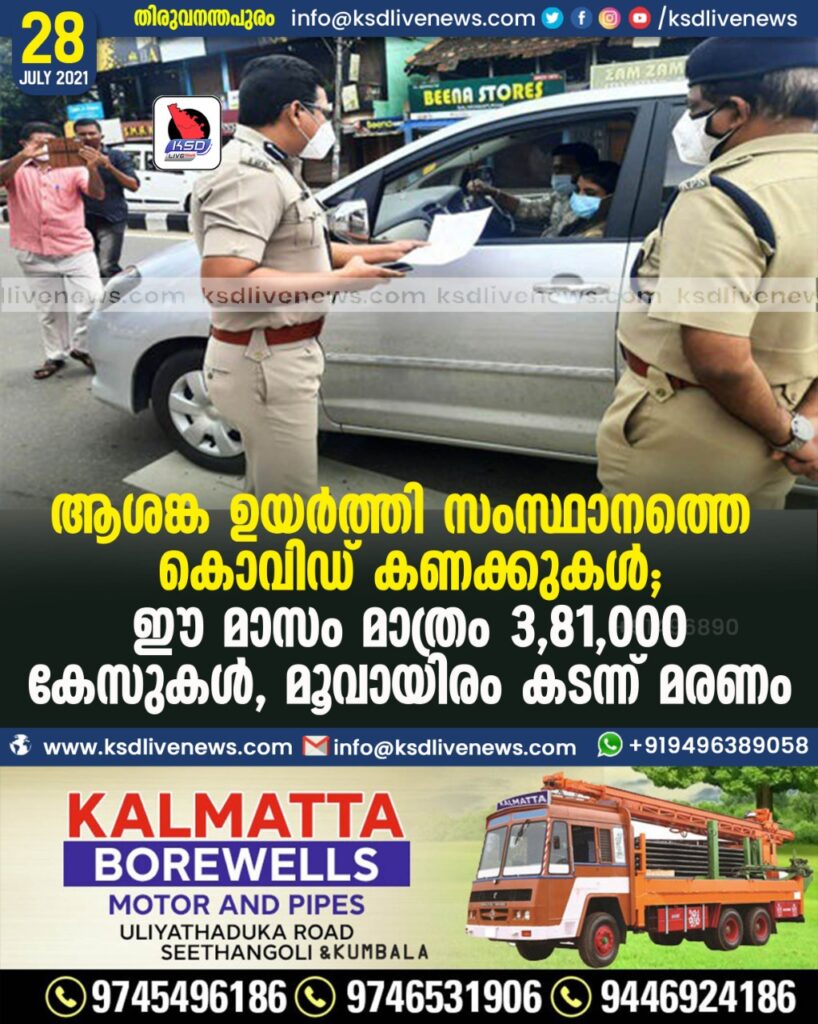 ആശങ്ക ഉയർത്തി സംസ്ഥാനത്തെ കൊവി‍‍ഡ് കണക്കുകൾ; ഈ മാസം മാത്രം 3,81,000 കേസുകൾ, മൂവായിരം കടന്ന് മരണം