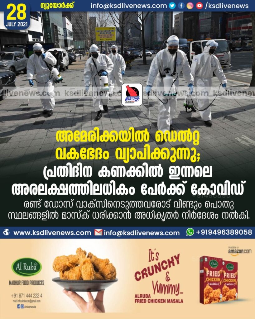 അമേരിക്കയില് ഡെല്റ്റ വകഭേദം വ്യാപിക്കുന്നു; പ്രതിദിന കണക്കിൽ ഇന്നലെ അരലക്ഷത്തിലധികം പേർക്ക് കോവിഡ്