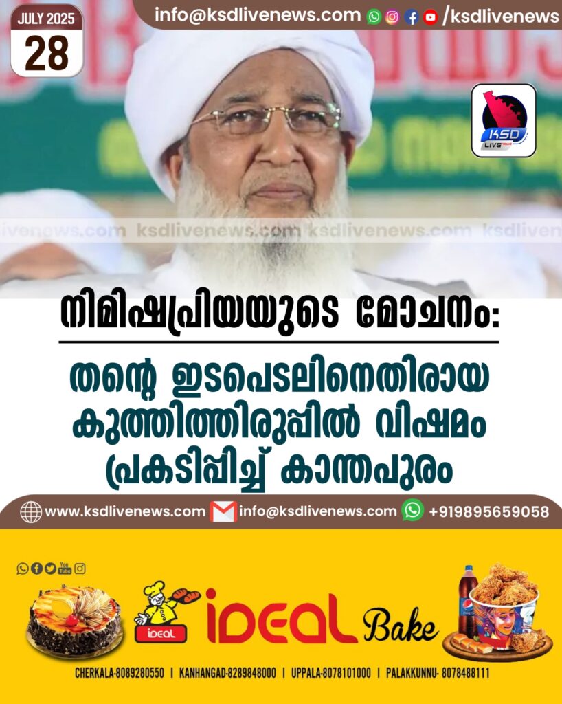 നിമിഷപ്രിയയുടെ മോചനം; തന്റെ ഇടപെടലിനെതിരായ കുത്തിത്തിരുപ്പില് വിഷമം പ്രകടിപ്പിച്ച് കാന്തപുരം