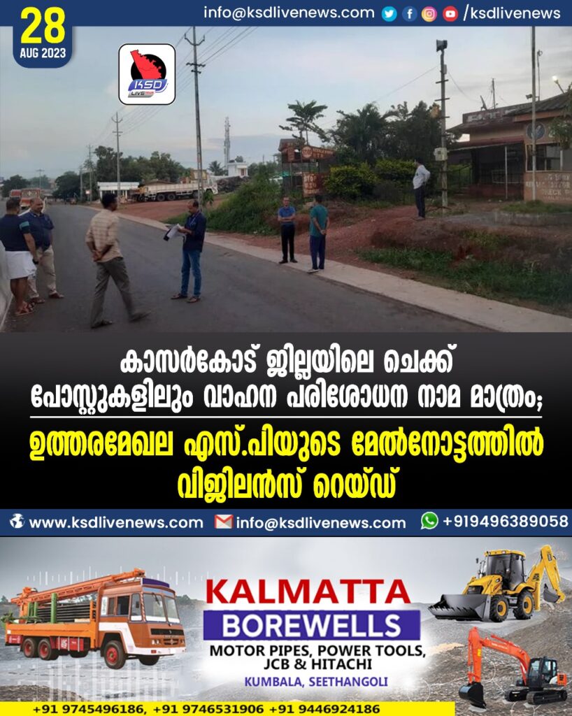 കാസര്കോട് ജില്ലയിലെ ചെക്ക് പോസ്റ്റുകളിലും വാഹന പരിശോധന നാമമാത്രം; ഉത്തരമേഖല എസ്.പിയുടെ മേല്നോട്ടത്തില് വിജിലന്സ് റെയ്ഡ്