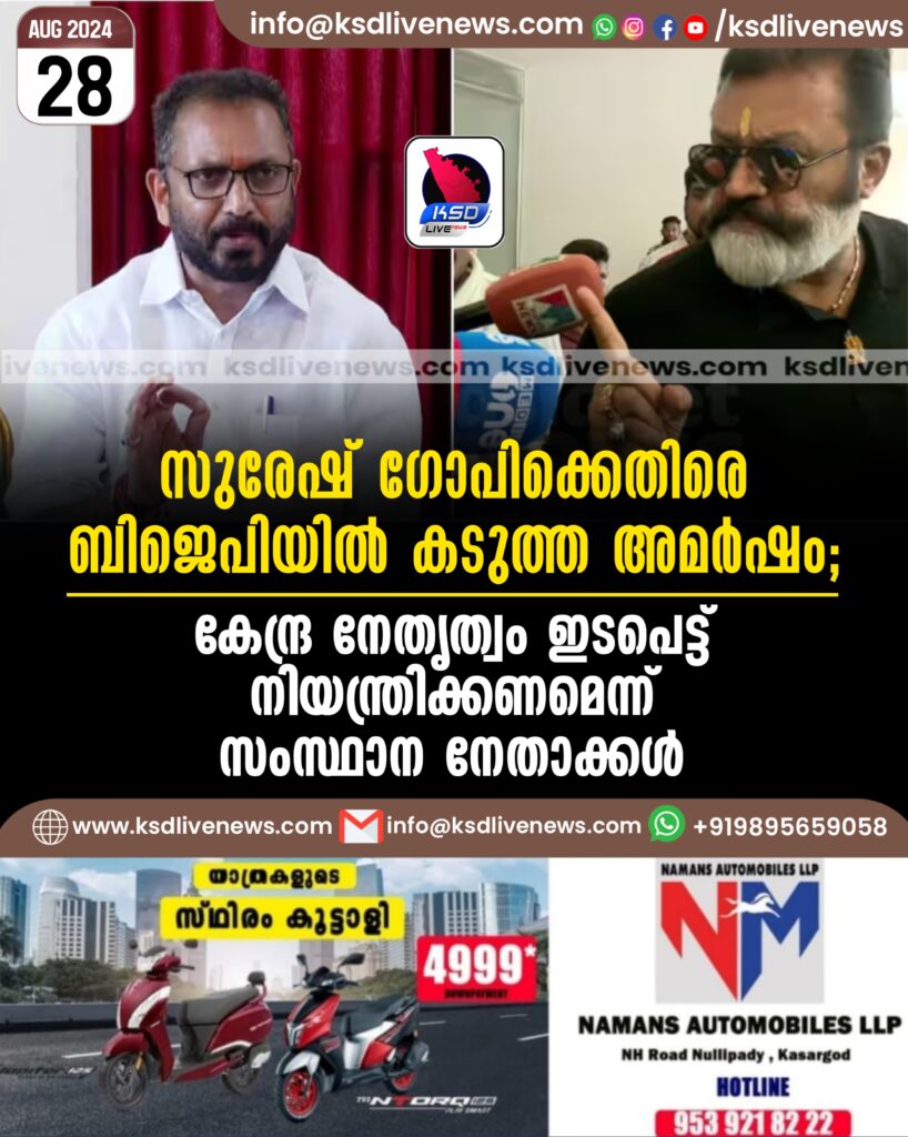 സുരേഷ് ഗോപിക്കെതിരെ ബിജെപിയിൽ കടുത്ത അമർഷം; കേന്ദ്ര നേതൃത്വം ഇടപെട്ട് നിയന്ത്രിക്കണമെന്ന് സംസ്ഥാന നേതാക്കള്‍