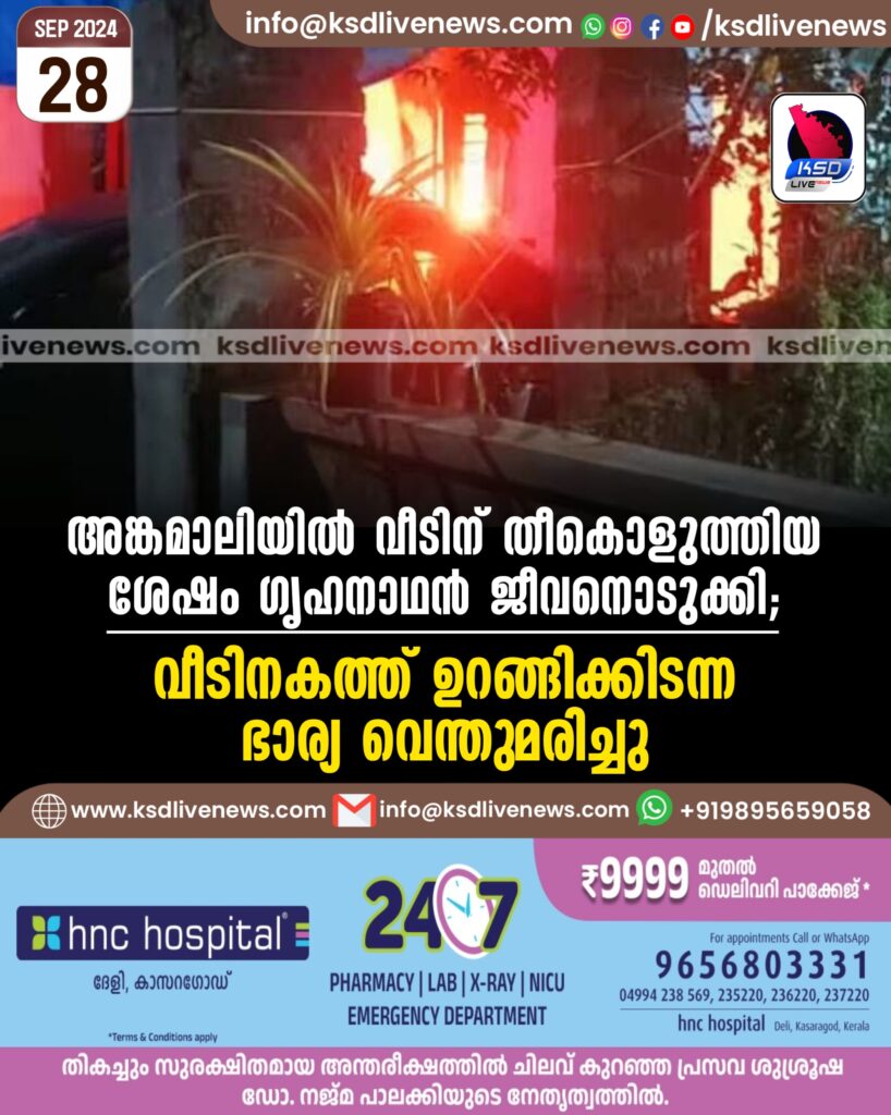 അങ്കമാലിയില്‍ വീടിന് തീകൊളുത്തിയ ശേഷം ഗൃഹനാഥന്‍ ജീവനൊടുക്കി; വീടിനകത്ത് ഉറങ്ങിക്കിടന്ന ഭാര്യ വെന്തുമരിച്ചു