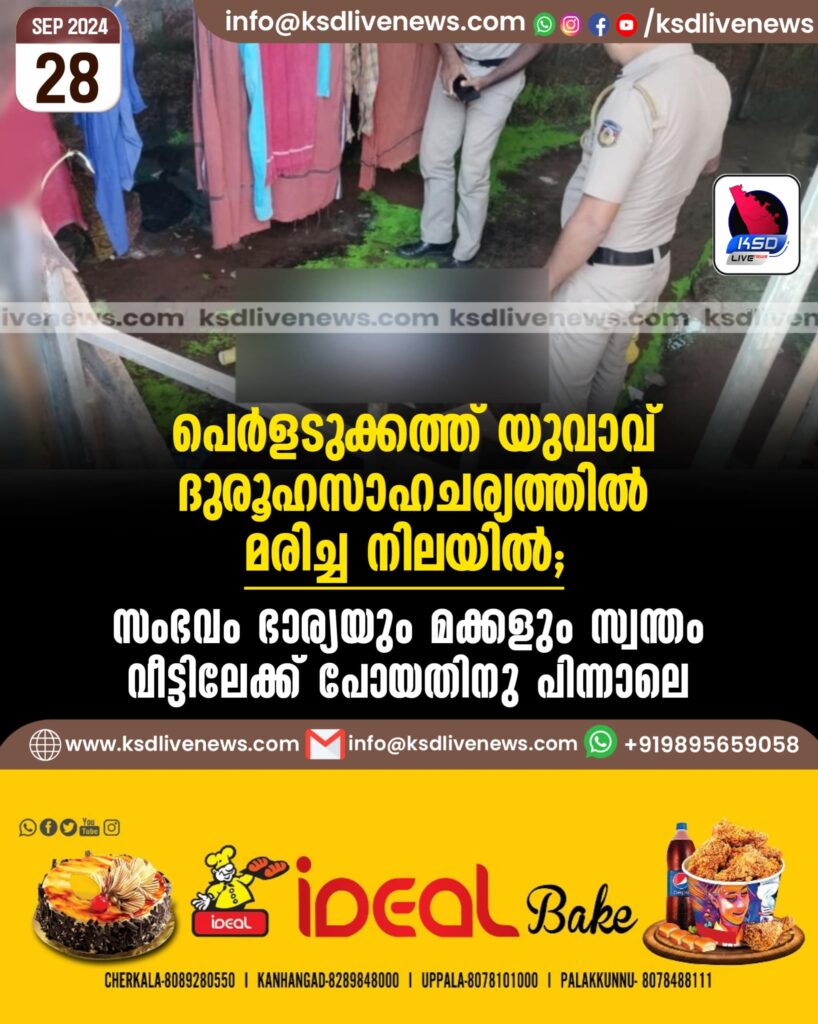 പെര്ളടുക്കത്ത് യുവാവ് ദുരൂഹസാഹചര്യത്തില് മരിച്ച നിലയില്; സംഭവം ഭാര്യയും മക്കളും സ്വന്തം വീട്ടിലേക്ക് പോയതിനു പിന്നാലെ