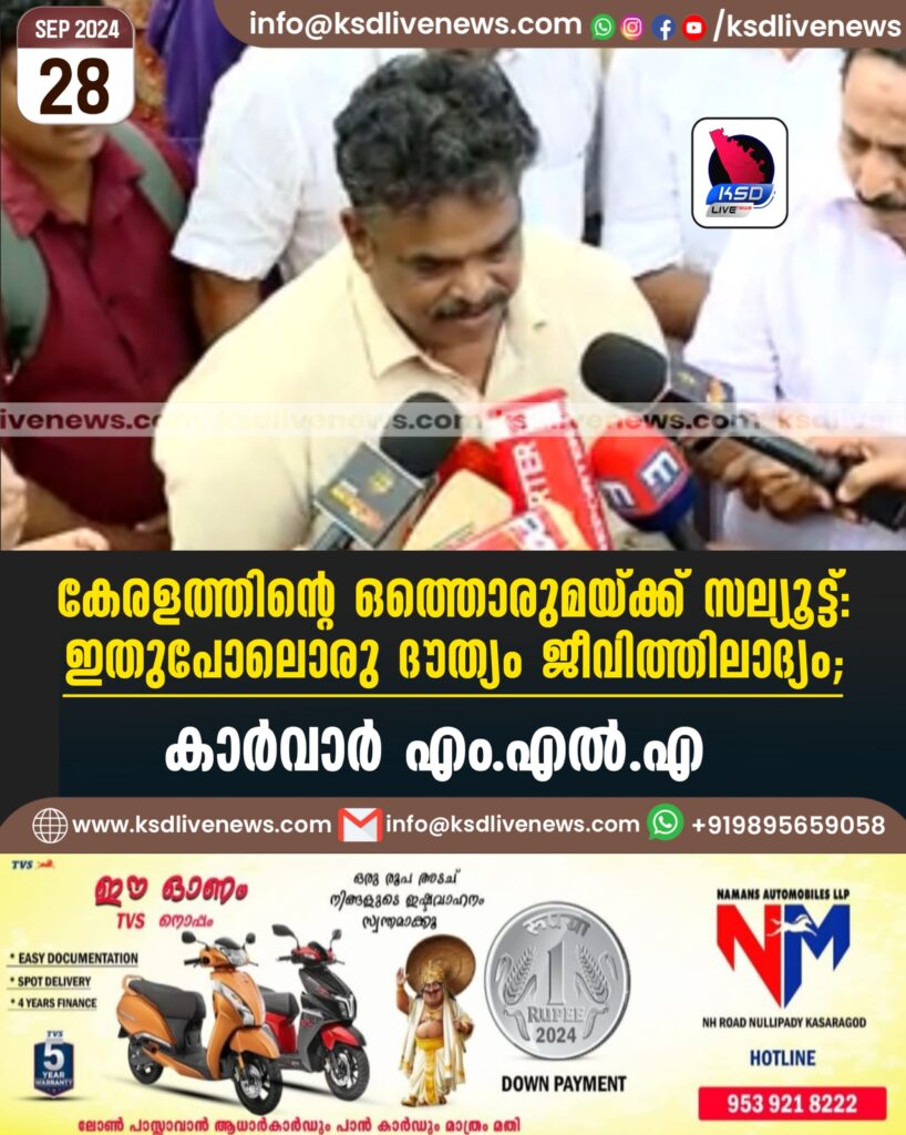 കേരളത്തിന്റെ ഒത്തൊരുമയ്ക്ക് ‘സല്യൂട്ട്’, ഇതുപോലൊരു ദൗത്യം ജീവിത്തിലാദ്യം’;കാര്വാര് MLA