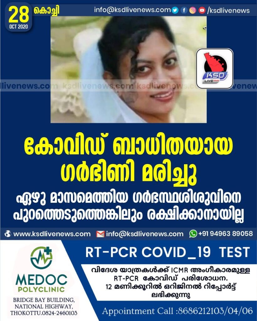 കോവിഡ് ബാധിതയായ ഗർഭിണി മരിച്ചു ; ഏഴു മാസമെത്തിയ ഗർഭസ്ഥശിശുവിനെ പുറത്തെടുത്തെങ്കിലും രക്ഷിക്കാനായില്ല