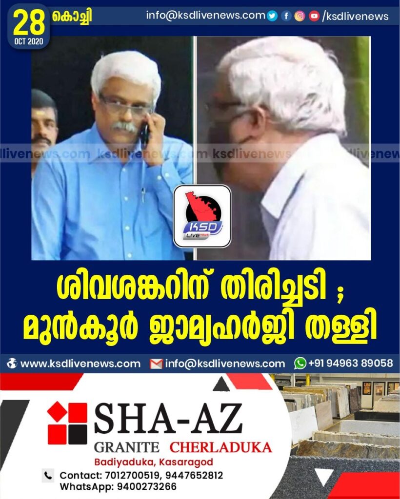 ശിവശങ്കറിന് തിരിച്ചടി ; മുൻകൂർ ജാമ്യഹർജി തള്ളി