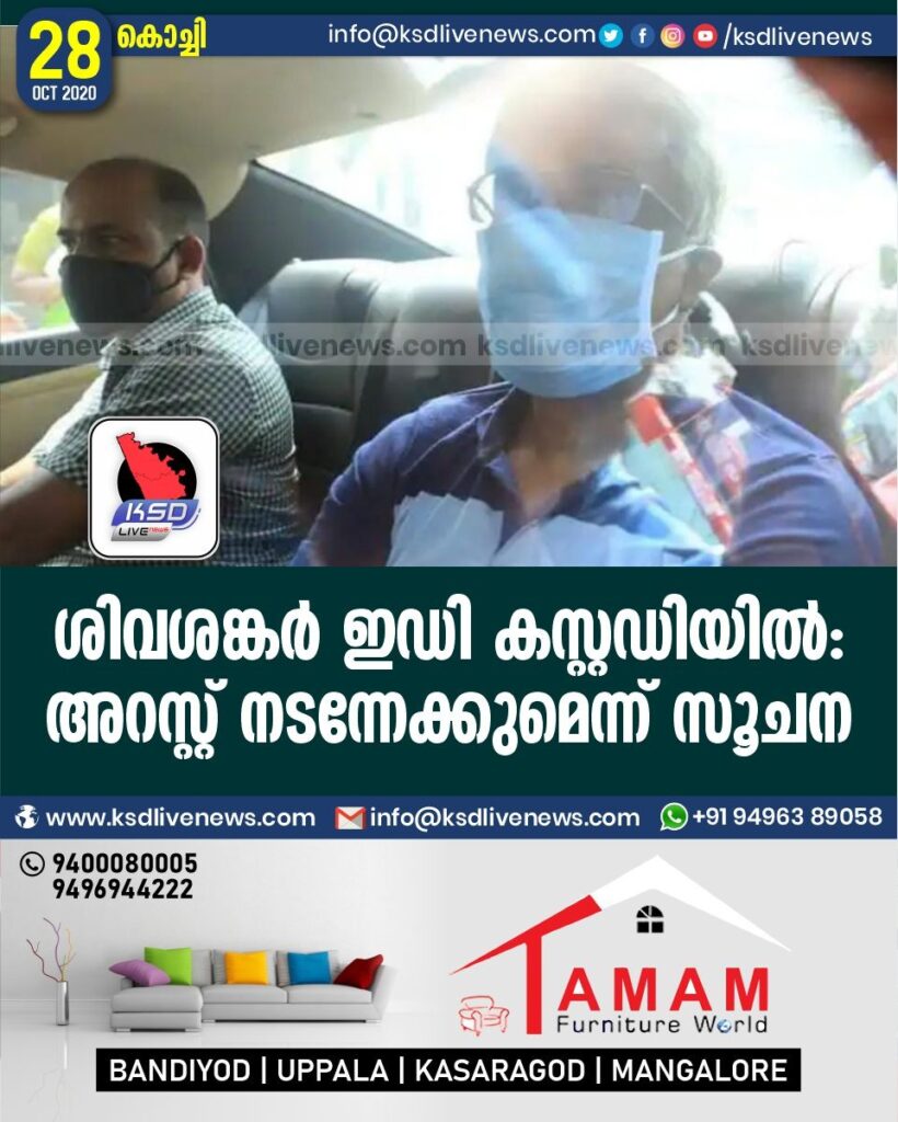 ശിവശങ്കർ ഇഡി കസ്റ്റഡിയിൽ : അറസ്റ്റ് നടന്നേക്കുമെന്ന് സൂചന