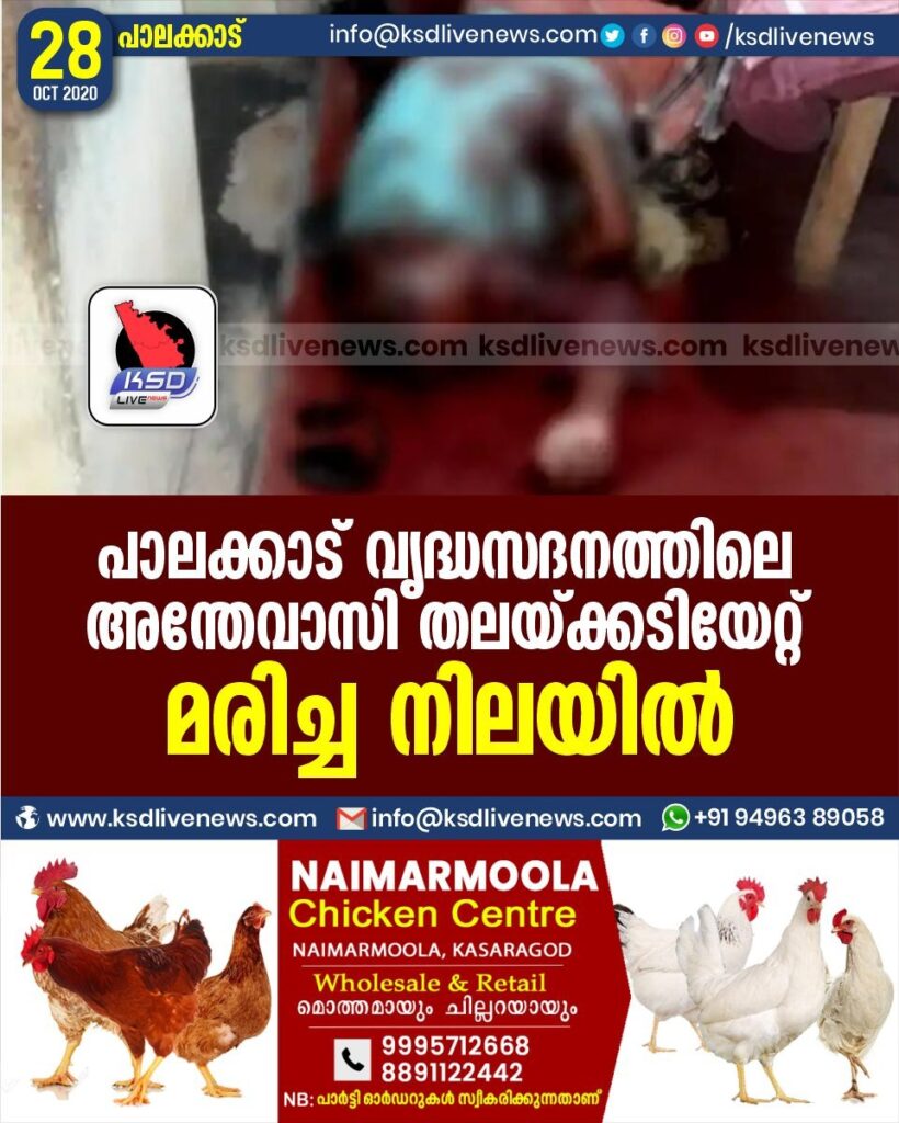 പാലക്കാട് വൃദ്ധസദനത്തിലെ അന്തേവാസി തലയ്ക്കടിയേറ്റ് മരിച്ച നിലയിൽ