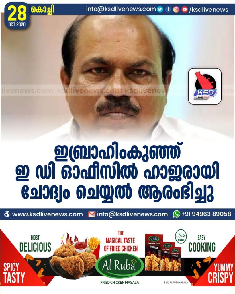 ഇബ്രാഹിംകുഞ്ഞ് ഇ ഡി ഓഫീസിൽ ഹാജരായി ; ചോദ്യം ചെയ്യൽ ആരംഭിച്ചു