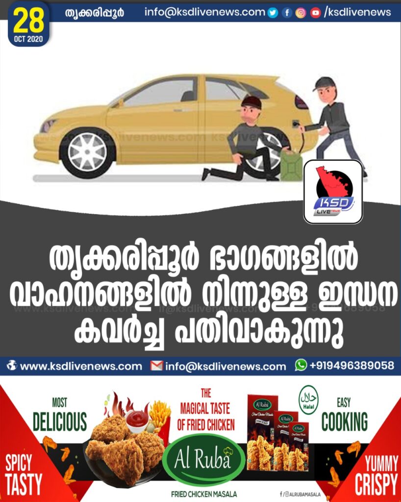 തൃക്കരിപ്പൂർ ഭാഗങ്ങളിൽ വാഹനങ്ങളില് നിന്നുള്ള ഇന്ധന കവര്ച്ച പതിവാകുന്നു