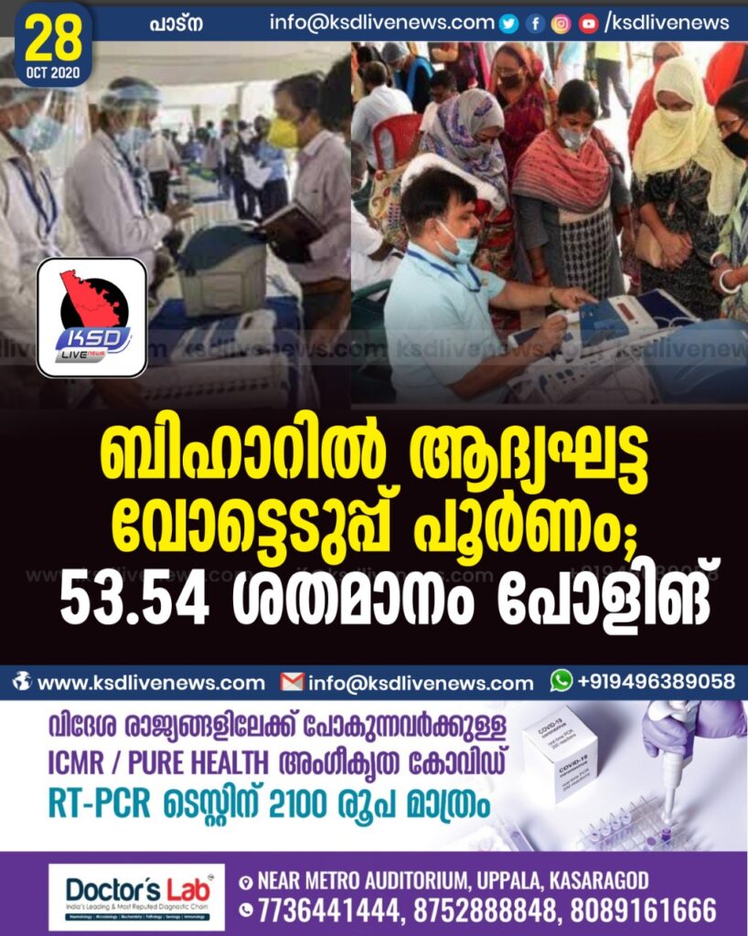 ബിഹാറില് ആദ്യഘട്ട വോട്ടെടുപ്പ് പൂര്ണം; 53.54 ശതമാനം പോളിങ്