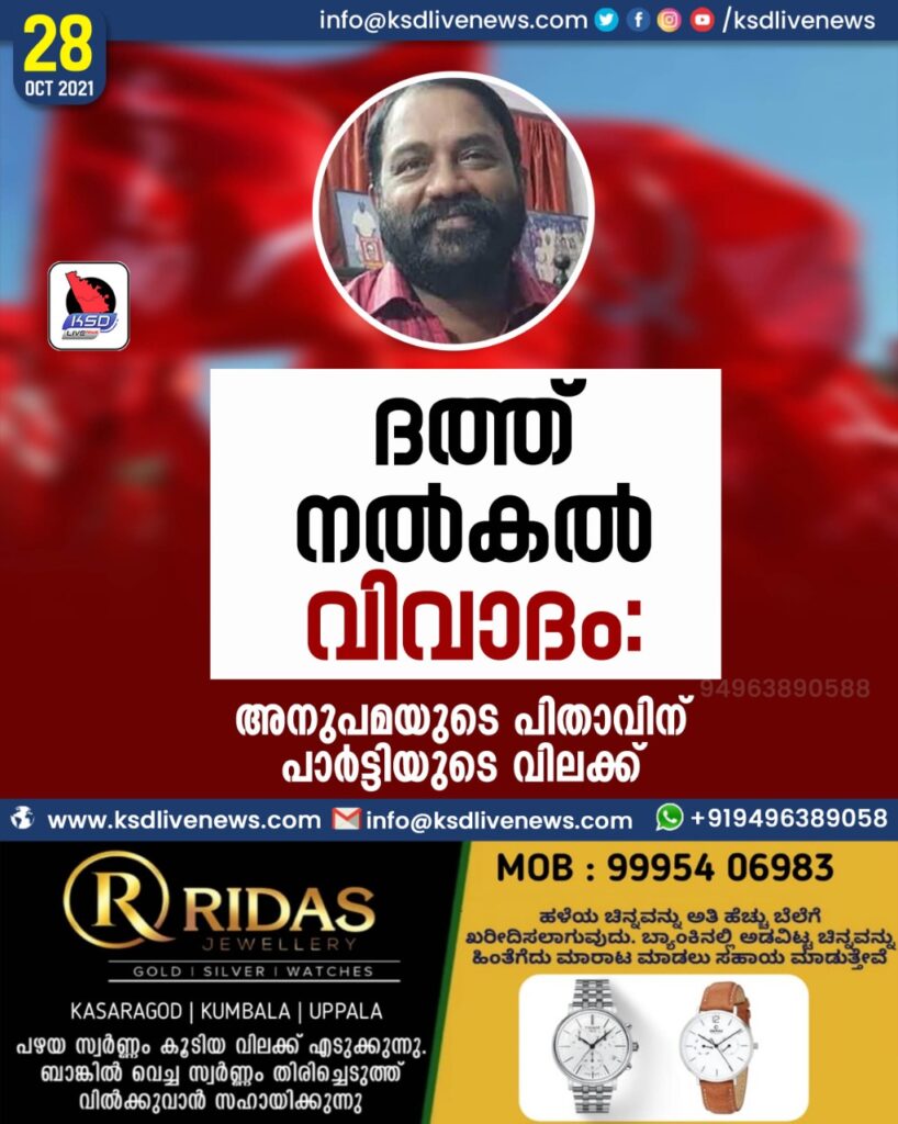 ദത്ത് നല്കല് വിവാദം: അനുപമയുടെ പിതാവിന് പാര്ട്ടിയുടെ വിലക്ക്