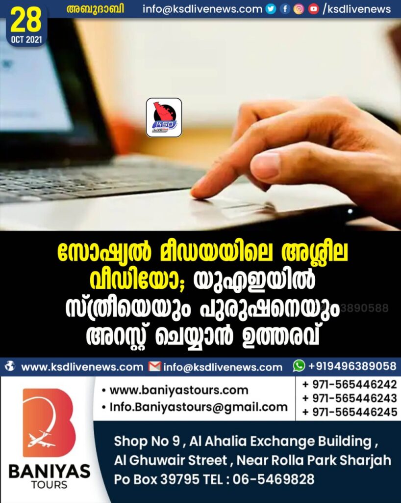 സോഷ്യല്‍ മീഡയയിലെ അശ്ലീല വീഡിയോ; യുഎഇയില്‍ സ്‍ത്രീയെയും പുരുഷനെയും അറസ്റ്റ് ചെയ്യാന്‍ ഉത്തരവ്