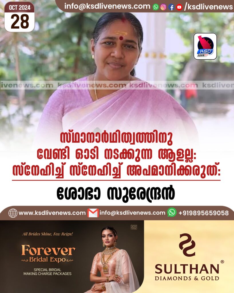 സ്ഥാനാർഥിത്വത്തിനു വേണ്ടി ഓടി നടക്കുന്ന ആളല്ല: സ്നേഹിച്ച് സ്നേഹിച്ച് അപമാനിക്കരുത്: ശോഭാ സുരേന്ദ്രൻ