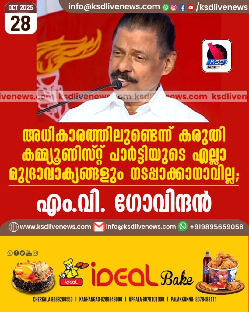 അധികാരത്തിലുണ്ടെന്ന് കരുതി കമ്മ്യൂണിസ്റ്റ് പാര്ട്ടിയുടെ എല്ലാ മുദ്രാവാക്യങ്ങളും നടപ്പാക്കാനാവില്ല- എം.വി. ഗോവിന്ദന്