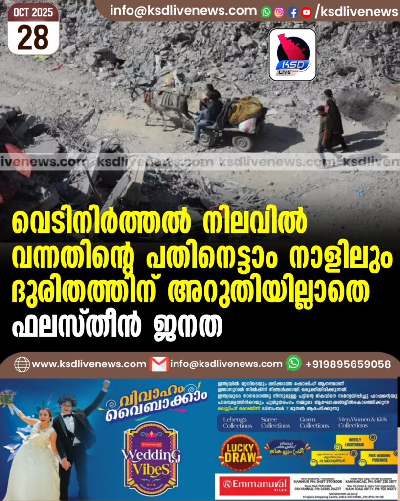 വെടിനിര്ത്തല് നിലവില് വന്നതിന്റെ പതിനെട്ടാം നാളിലും ദുരിതത്തിന് അറുതിയില്ലാതെ ഫലസ്തീൻ ജനത