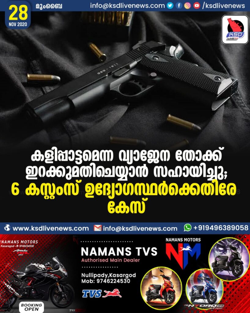 കളിപ്പാട്ടമെന്ന വ്യാജേന തോക്ക് ഇറക്കുമതിചെയ്യാന്‍ സഹായിച്ചു ; 6 കസ്റ്റംസ് ഉദ്യോഗസ്ഥര്‍ക്കെതിരേ കേസ്