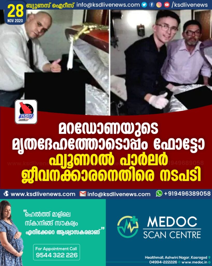 മറഡോണയുടെ മൃതദേഹത്തോടൊപ്പം ഫോട്ടോ ഫ്യൂണറൽ പാർലർ ജീവനക്കാരനെതിരെ നടപടി