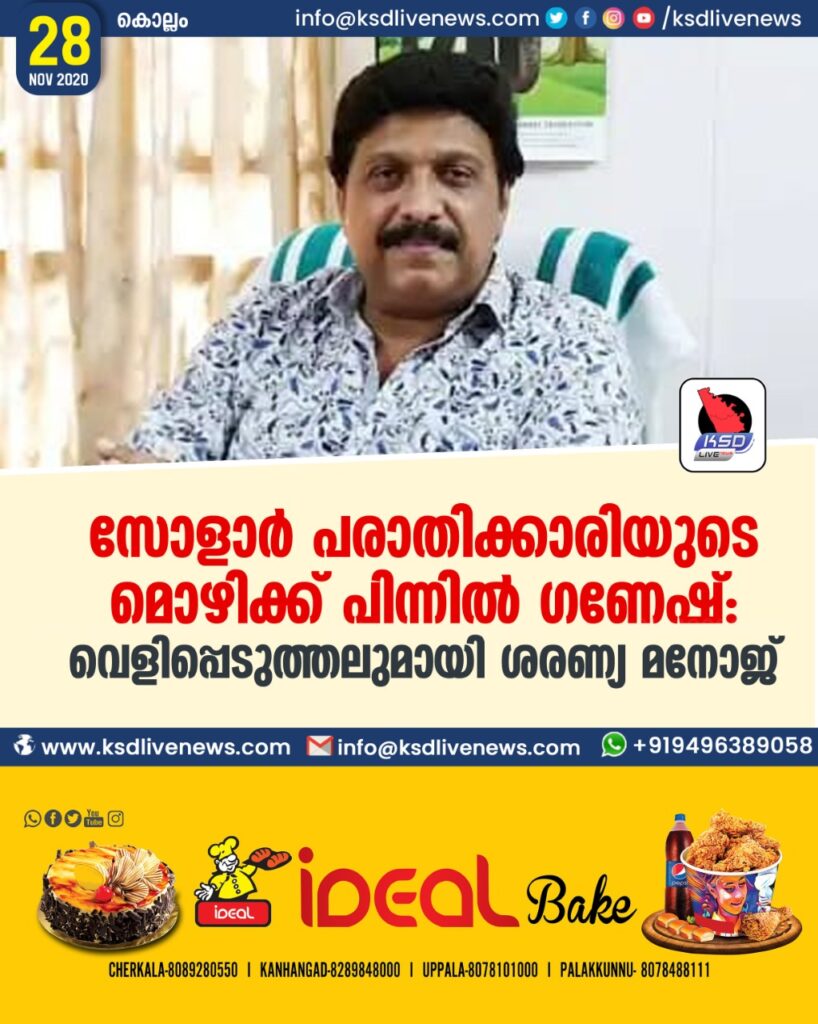 സോളാർ പരാതിക്കാരിയുടെ മൊഴിക്ക് പിന്നിൽ ഗണേഷ് : വെളിപ്പെടുത്തലുമായി ശരണ്യ മനോജ്