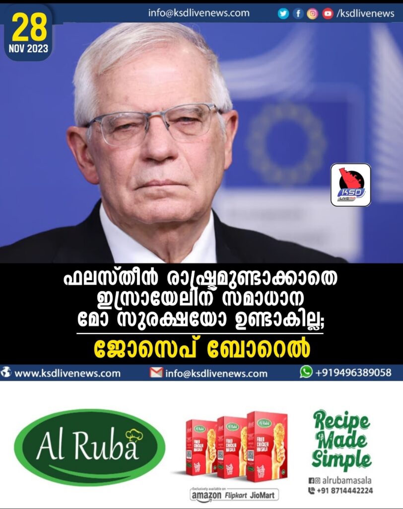 ഫലസ്തീൻ രാഷ്ട്രമുണ്ടാക്കാതെ ഇസ്രായേലിന് സമാധാനമോ സുരക്ഷയോ ഉണ്ടാകില്ല – ജോസെപ് ബോറെൽ