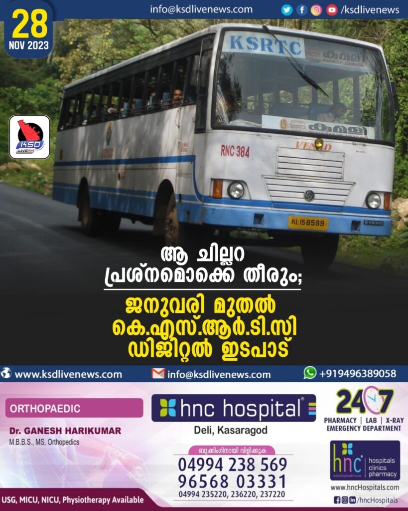 ആ ചില്ലറ പ്രശ്നമൊക്കെ തീരും; ജനുവരി മുതല് KSRTC ഡിജിറ്റല് ഇടപാട്
