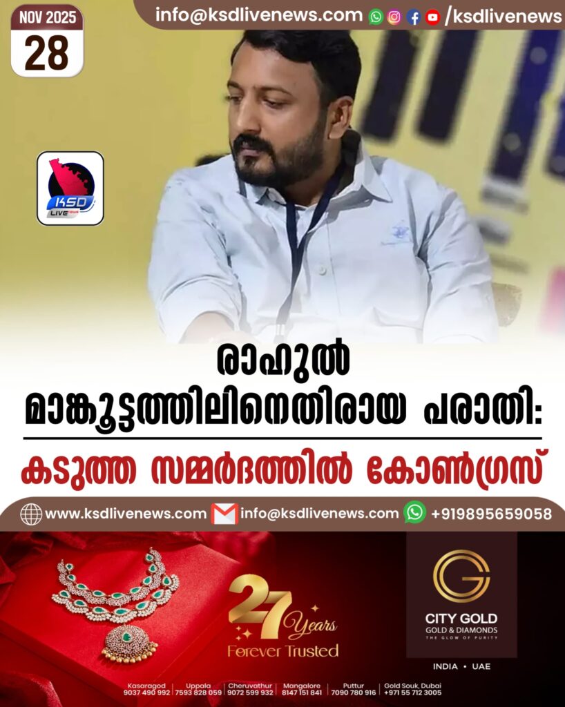 രാഹുൽ മാങ്കൂട്ടത്തിലിനെതിരായ പരാതി: കടുത്ത സമ്മർദത്തിൽ കോൺഗ്രസ്