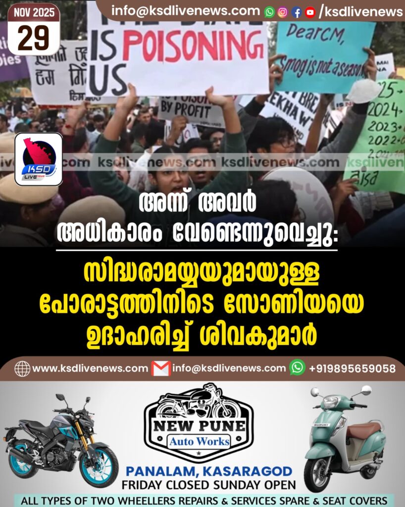 അന്ന് അവർ അധികാരം വേണ്ടെന്നുവെച്ചു: സിദ്ധരാമയ്യയുമായുള്ള പോരാട്ടത്തിനിടെ സോണിയയെ ഉദാഹരിച്ച് ശിവകുമാര്‍