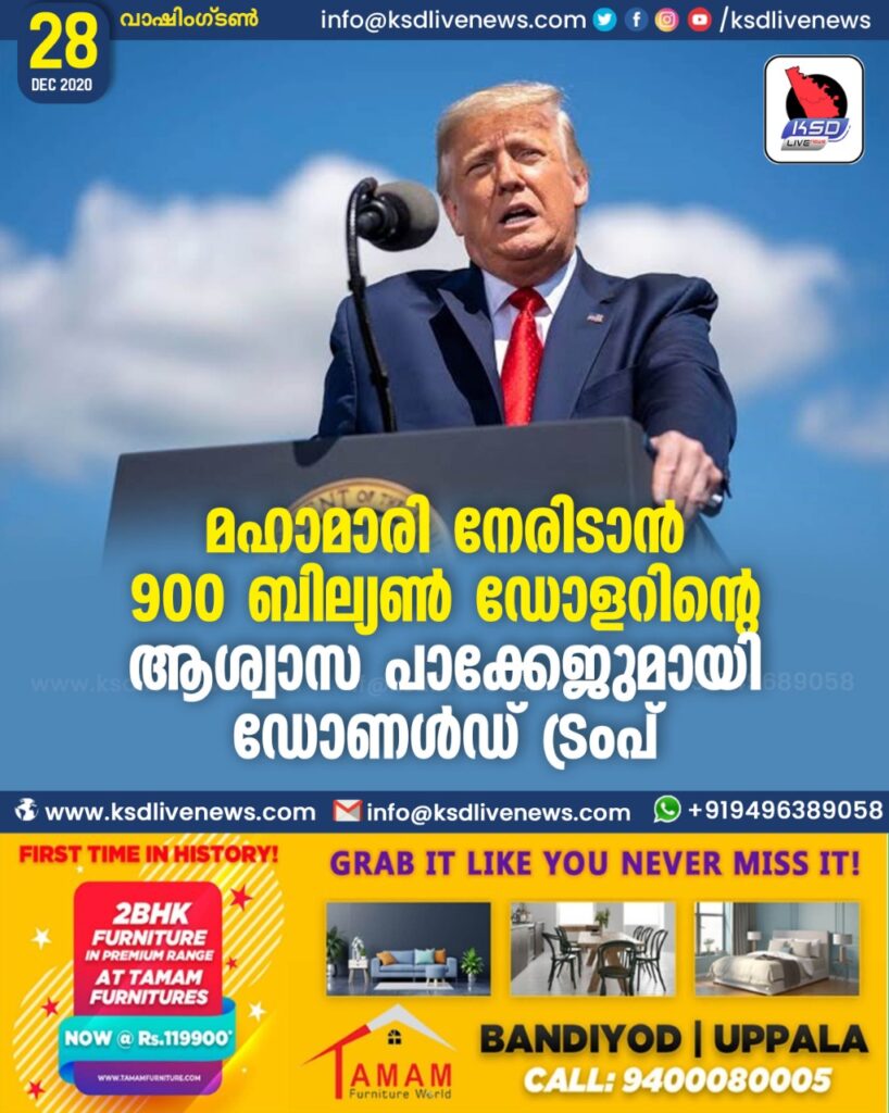മഹാമാരി നേരിടാൻ 900 ബില്യൺ ഡോളറിന്റെ ആശ്വാസ പാക്കേജുമായി ഡോണൾഡ് ട്രംപ്