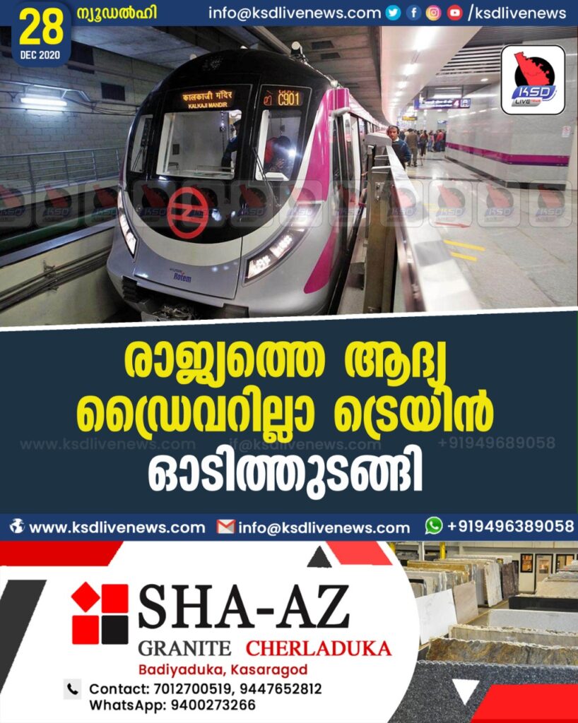 രാജ്യത്തെ ആദ്യ ഡ്രൈവറില്ലാ ട്രെയിൻ ഓടിത്തുടങ്ങി