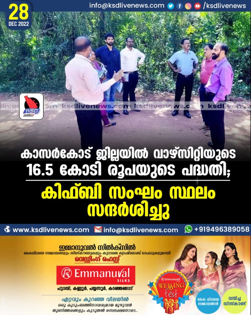 കാസർകോട് ജില്ലയിൽ വാഴ്സിറ്റിയുടെ 16.5 കോടി രൂപയുടെ പദ്ധതി; കിഫ്ബി സംഘം സ്ഥലം സന്ദർശിച്ചു