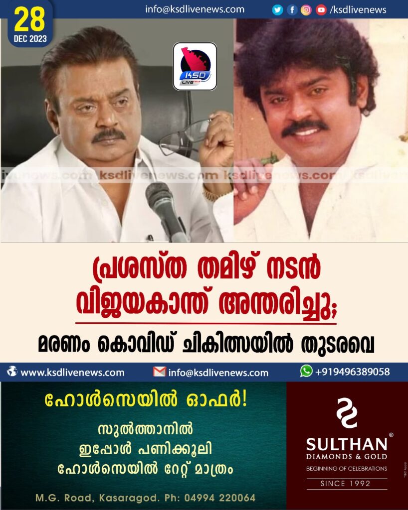 പ്രശസ്ത തമിഴ് നടൻ വിജയകാന്ത് അന്തരിച്ചു; മരണം കൊവിഡ് ചികിത്സയില് തുടരവെ