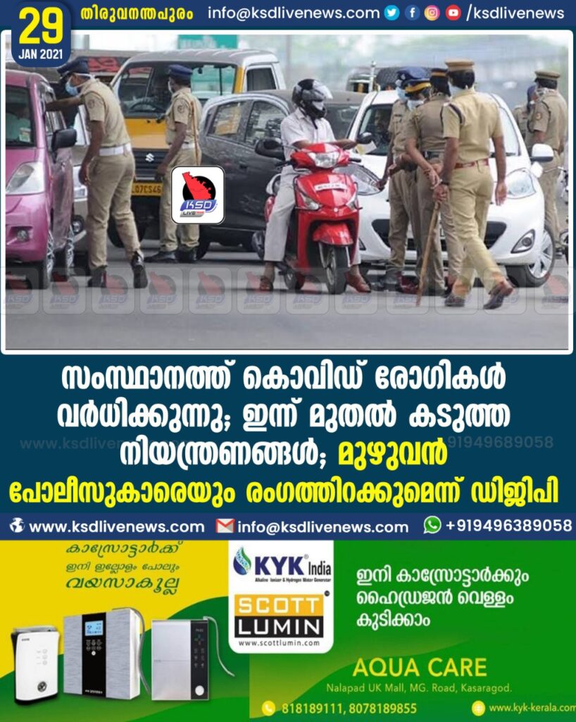 സംസ്ഥാനത്ത് കൊവിഡ് രോഗികള് വര്ധിക്കുന്നു; ഇന്ന് മുതല് കടുത്ത നിയന്ത്രണങ്ങള്; മുഴുവന് പോലീസുകാരെയും രംഗത്തിറക്കുമെന്ന് ഡിജിപി