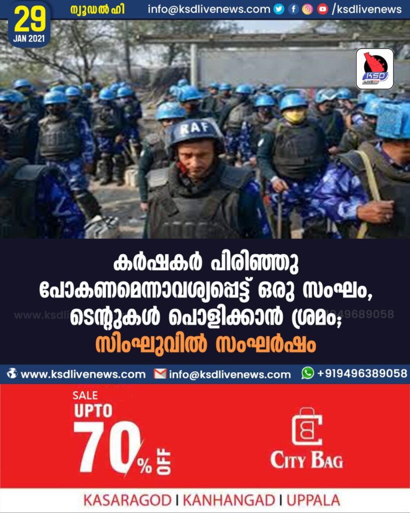 കര്ഷകര് പിരിഞ്ഞുപോകണമെന്നാവശ്യപ്പെട്ട് ഒരു സംഘം, ടെന്റുകള് പൊളിക്കാന് ശ്രമം; സിംഘുവില് സംഘര്ഷം