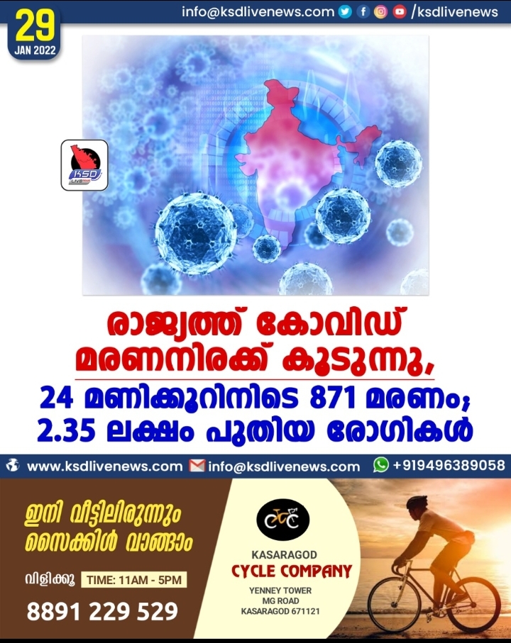 രാജ്യത്ത് കോവിഡ് മരണനിരക്ക് കൂടുന്നു, 24 മണിക്കൂറിനിടെ 871 മരണം; 2.35 ലക്ഷം പുതിയ രോഗികള്‍