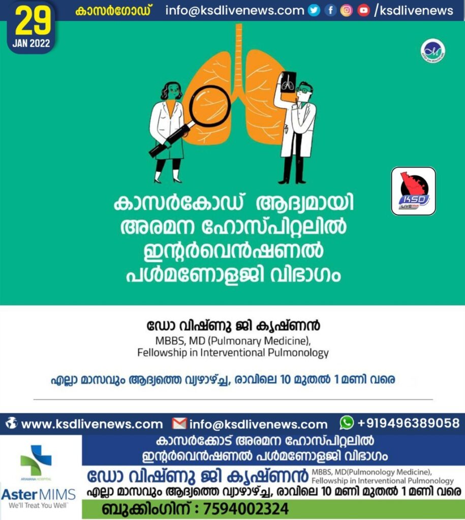 കാസർകോഡ് ആദ്യമായി അരമന ഹോസ്പിറ്റലിൽ ഇൻ്റർവെൻഷണൽ പൾമണോളജി (ശ്വാസകോശ വിഭാഗം)