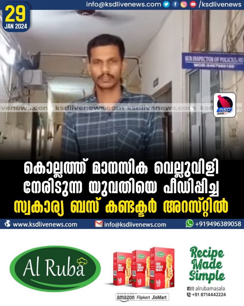കൊല്ലത്ത് മാനസിക വെല്ലുവിളി നേരിടുന്ന യുവതിയെ പീഡിപ്പിച്ച സ്വകാര്യ ബസ് കണ്ടക്ടര് അറസ്റ്റില്
