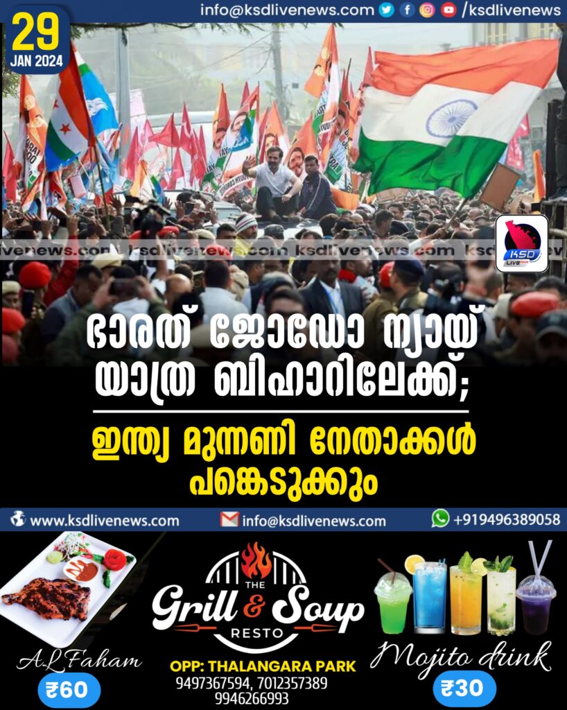 ഭാരത് ജോഡോ ന്യായ് യാത്ര ബിഹാറിലേക്ക്; ഇന്ത്യ മുന്നണി നേതാക്കള് പങ്കെടുക്കും
