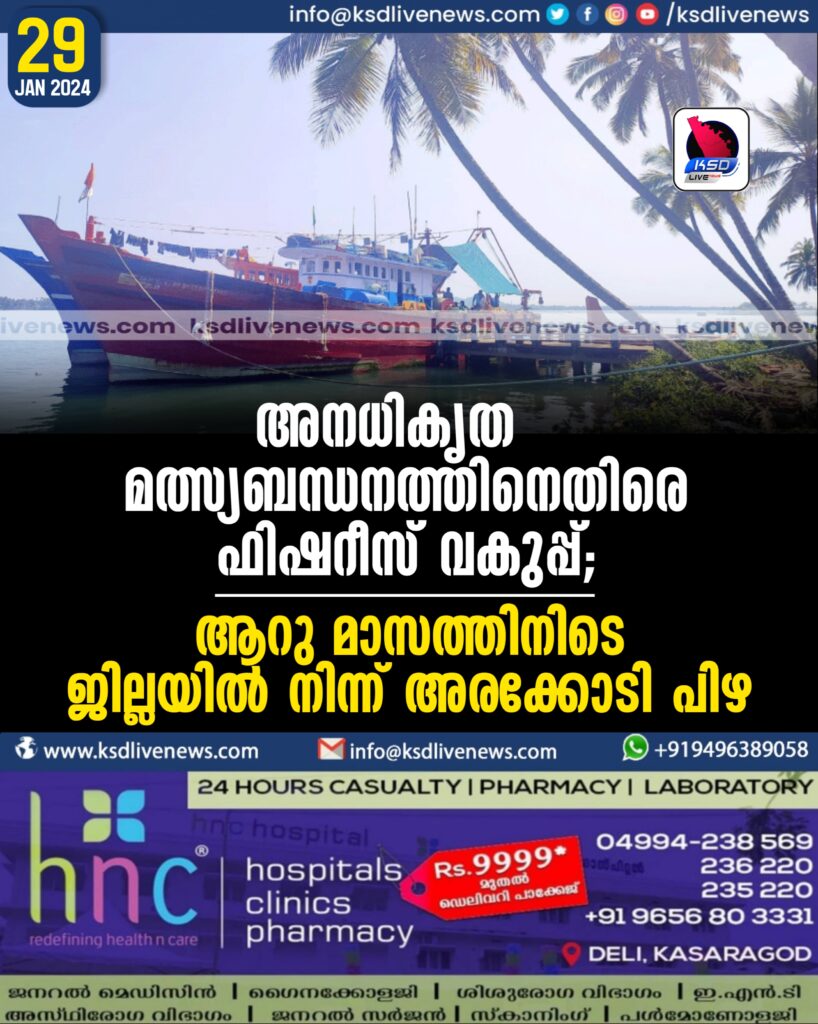 അനധികൃത മത്സ്യബന്ധനത്തിനെതിരെ ഫിഷറീസ് വകുപ്പ്; ആറു മാസത്തിനിടെ  ജില്ലയിൽ നിന്ന് അരക്കോടി പിഴ
