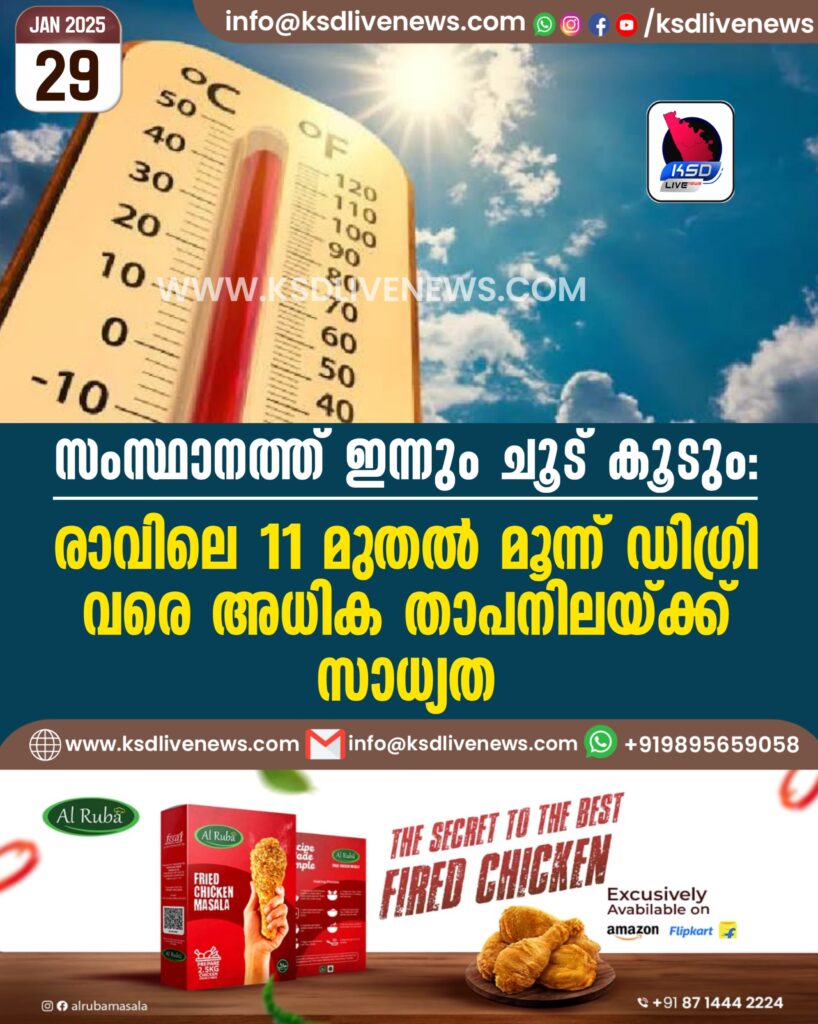 സംസ്ഥാനത്ത് ഇന്നും ചൂട് കൂടും; രാവിലെ 11 മുതൽ മൂന്ന് ഡിഗ്രി വരെ അധിക താപനിലയ്ക്ക് സാധ്യത